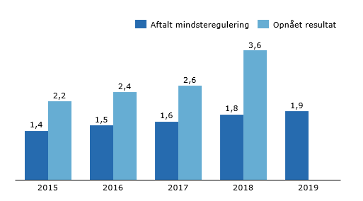 I 2018 aftale vi en mindstereguleringsramme på 1,8 %, men endte med et resultat på 3,6 %. Vi forventer også i 2019, at den realiserede lønudvikling bliver højere end den aftalte mindstereguleringsramme.